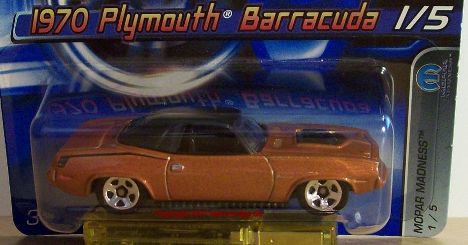 | 1970 Plymouth Barracuda | orange1, orange2, blue | 2006 Mopar Madness | 61 2006 |