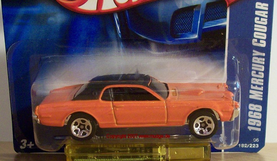 | 1968 Mercury Cougar | orange | 2006 Hot Wheels | 182 2006 |
